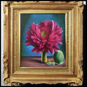 話題のお絵描きばりぐっどくん AI が描いた絵 8K, ジョージア・オキーフ,花を描く,高品質,写実的,油絵, 静物画,木製額付きで全体的に描く
