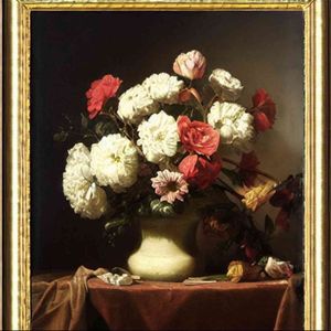 話題のお絵描きばりぐっどくん AI が描いた絵 8K, ピエール=ジョゼフ・ルドゥーテ,花を描く,高品質,写実的,油絵, 静物画,木製額付きで全体的に描く
