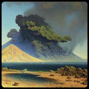 [お絵描きばりぐっどくん] 10K,高品質,写実的,油絵, 風景画 , リアル, 絶景, 煙棚びく桜島, 青天,イワン・クラムスコイ