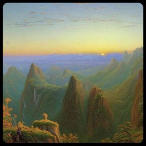 お絵描きばりぐっどくん] 鹿児島旅行✈️の前に高千穂峰の風景を想像して作成しました。 10K,高品質,写実的,油絵, 風景画 , リアル, 絶景, 高千穂峰の山頂からの眺め,夕暮れ, イワン・クラムスコイ
