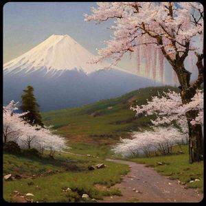 [お絵描きばりぐっどくん] 10K,高品質,写実的,油絵, イワン・クラムスコイ, 風景画 , リアル, 薩堆峠, 薄寒桜,富士山,快晴
