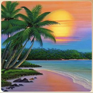 [お絵描きばりぐっどくん] 世界の絶景スポット 10K,高品質,写実的,油絵, 風景画 , リアル, 絶景スポット, サムイ島,ココナッツの木,タイ,夕暮れ