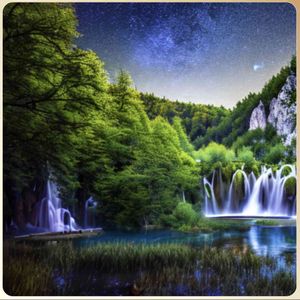[お絵描きばりぐっどくん] 世界の絶景スポット 10K,高品質,写実的,油絵, 風景画 , リアル, 絶景スポット, 夜景,星空,プリトヴィッツェ湖群国立公園,クロアチア