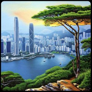 [お絵描きばりぐっどくん] 世界の絶景スポット 10K,高品質,写実的,油絵, 風景画 , リアル, 絶景スポット, 香港, ヴィクトリア・ピーク