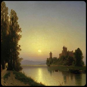 [お絵描きばりぐっどくん] 8K,高品質,写実的,油絵, イワン・クラムスコイ, 風景画 , リアル, 青空,湖,山並み,古城,ロマンチック街道,ドイツ