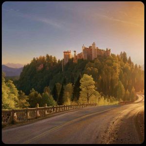 [お絵描きばりぐっどくん] 8K,高品質,写実的,写真,イワン・クラムスコイ, 風景画 , リアル, ホーエンシュバンガウ城,ロマチック街道,夕焼け