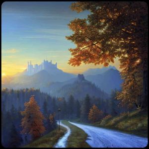 [お絵描きばりぐっどくん] 8K,高品質,写実的,写真,イワン・クラムスコイ, 風景画 , リアル, ホーエンシュバンガウ城,ロマチック街道,朝焼け