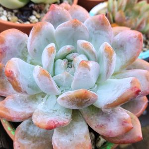 モンロー 10センチ超えのデカベリアのモンローです🥰 今年は初めて花芽が出ました♫ でもお庭の大工事で交配出来ず…😣 ゆっくりじっくり交配したかった〜💦 今日は待ちに待った多肉棚と多肉フェンスが出来上がったので、あちこちに置かれていた多肉を並らべ、ご満悦❤️ 全部置ききれなかったけど…😅 多肉棚3つも作ってもらったのに…💦 プレ企画やってみんなに育ててもらおうかなぁ〜😄💞
