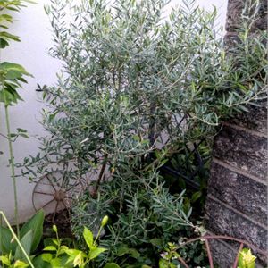 オリーブの木は2箇所にあります p1は地植え こちらはいい感じ p2は鉢植え 底を破ってレンガ隙間から地下に続いてしまっていて大きくなりすぎです もちろん剪定してますが………すごい p3 3年目のレウコフィルム お行儀は悪いけど大きくなったのでお花を心待ちにしています