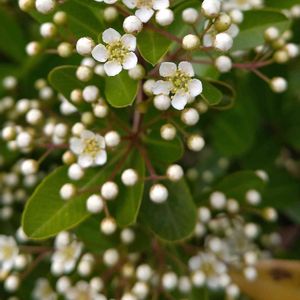 ピラカンサ🌿🤍 秋に赤い実が樹木全体にびっしり実ります🔴 白い小花もびっしり🤍 🏷金曜日の蕾たち