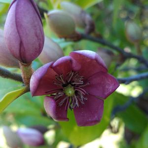 唐種招霊 カラタネオガタマ 🌿💜❤️ 花の香りがバナナの香りに似ているので英名は バナナブッシュやバナナツリーと言われてます🍌 別名トウオガタマ(唐招霊)