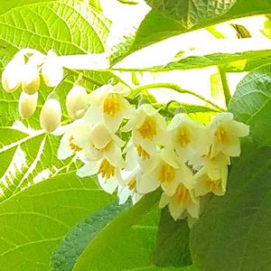 白雲木 ハクウンボク🌿🤍💛 エゴノキ科 開花の様子が白い雲のように見えることが和名の由来。 高い木で花は全部上の方に咲いててこれが精一杯でした😅