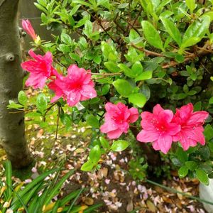 R4.4.14 カイドウの下で少しだけツツジが咲きました。