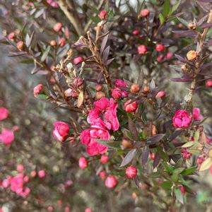 冬のほとんど花のない庭で色を添えてくれているギョリュウバイ 11月ぐらいからずっと咲き続けてくれています💕 ギョリュウバイとマヌカハニーの木は同じ、と聞いたことがあるのですが、ハチは全然来ません😄