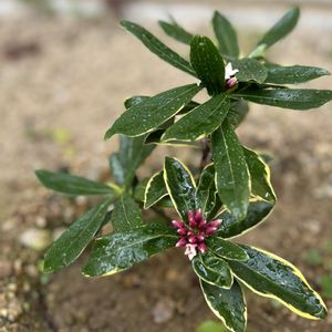 今日のお花、ジンチョウゲ(沈丁花) 秋に産直でお迎えしました。ひとつふたつ、お花咲きかけてます☺️