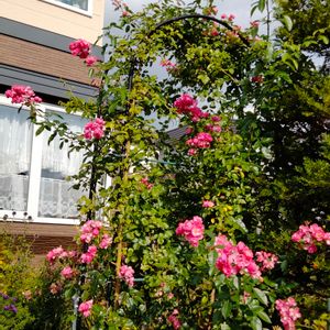秋バラ🌹アンジェラが咲いてます。 この花たちが終わったら冬眠準備、 弦を寝せてやらないとなりません。 ツルバラは大変です。