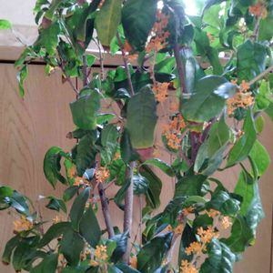 金木犀2度目の満開 ここでは一度散った後で又咲き誇りる様です。 去年も直ぐ散ってガッカリしてたら又咲き一寸安心しました。 この木ももう少ししたら、暖房を切った貯蔵部屋で休んで貰います🎶