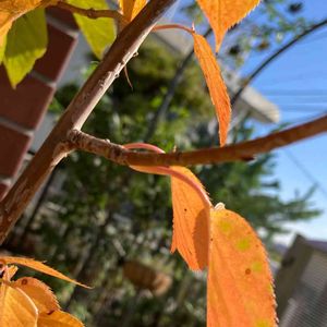 yoyoさんの 🏷木曜日は木 参加します☺️🌳 去年、引越し記念に横浜市からいただいた ヤマザクラが、 桜ってこんなに綺麗に色づいたかな🤔 と思うくらい素敵に紅葉🍁しております💕 大きくならないよう鉢植えにしてるし まだ花を見たことないのですが、 来年は咲いてくれそうな気がします😆