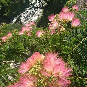 今日のお花 合歓の木 ネムノキ🌿💗 去年6月のpicです。 渓谷沿いに咲いてました。 道路の上からパチリ🤳