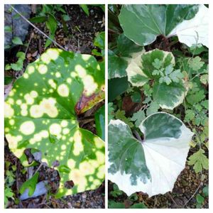 斑入り ツワブキ 虫食ってる〜 ٩(๑´0`๑)۶