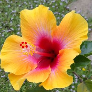 一昨年の 寒波で 唯一 生き残った ハイビスカス 咲きました ٩(๑´0`๑)۶