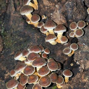 本日の撮影。 ナメコ… 少し遅いよう。 残念です… Ps昨日(12/7)からこれはエノキタケだろうと思ってます。カサがヤワらかっくなってるし胞子?で茶色く色がついて…