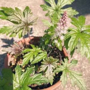 ティアレラ ピンクスカイロケット🚀 酷暑で枯らしてしまったかなと思っていたけれど芽を出してくれました🌱良かった! 切れ込みの深い艶のある葉っぱが素敵な子🌿 大株になるらしいのだけれど昨秋株分けしてしまったのでちんまりのままです 地植えの子も居たんだけど今のところ発見出来ず⤵️ うちの庭で地植えはティアレラには過酷みたいです🥲 なのでこれは鉢植え🌱 鉢なら移動が出来るからね💨