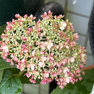 🌸ピンクアナベル🌸 去年お迎えしたばかりの鉢植えピンクアナベルさん🪴 かなり大きく育ち、ひとつひとつは小ぶりだけど花数がたくさんで嬉しい💕💕 茎が細いから雨風が心配だけどね💦