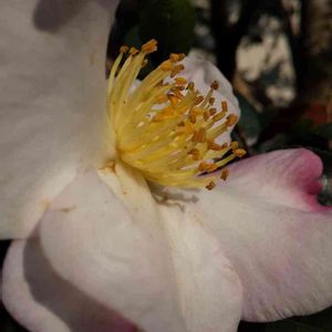 今朝の山茶花の一輪 「君の横顔 素敵だよ‼️」 って言ってしまいました😊