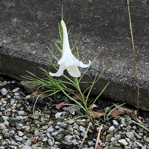 近所のアパート、それも軒先の砂利みたいな所にユリが咲いている。