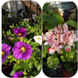 おはようございます カリブラコアとゼラニウムです 遅めの朝陽が当たり始めました 今日も小春日和の穏やかな1日が始まりました