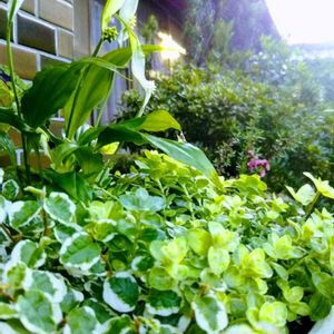 おはようございます😊 5月27日にupしたカラーリーフの寄せ植えを朝陽🌄と共に📷️してみました✨ スパティフィラムとカラーリーフが夜露に濡れてキラキラしています✨✨✨✨
