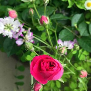 挿し木したムクゲさん✨ 今年はたくさん咲いてくれて嬉しいです! ゲンノショウコやカラミンサの小花も、あちこちで可愛く咲いています✨ レンゲローズの花も、また咲き始めました🌸