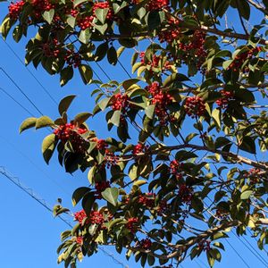 散歩で見つけた赤いかわいい実❤️ 青い空とのコントラストがすてきですね。 何て名前の木なのか分かりません🤷