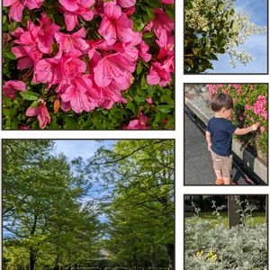 孫🧒と散歩中のお花💮🌳 ✭皐月が綺麗ですよ。 ✭白妙菊 ✭メタセコイア ✭モチノキかな❓ ✭孫 新緑が美しい公園まで散歩に行きました。 🧒遊具で遊ばずただ歩くだけ🚶でした。