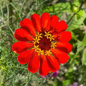 真っ赤な ジニア♡さん 黄色いお星さまいっぱい⭐️