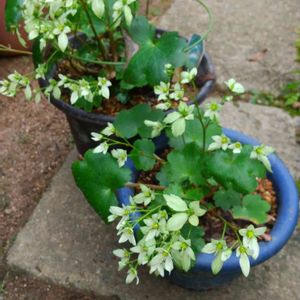 「大文字草」緑仙です。手前は株分けをしたもの。見事に開花しました。この品種は葉が大きく 花が多いです。2022秋の十草に登録します。