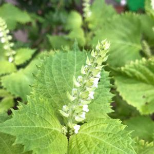 シソの葉に花が咲きました🌸 葉っぱも硬くなり食べなくなったら虫も食べなくなりました😅
