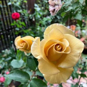 おはようございます☀️ 今朝のお花は 庭のバラ🌹 1,2 ローズヨコハマ💛 久しぶりに大きなお花が開いてきました✨ これくらいの状態がいいですね💕︎ 3 黄色だったスイートマスタード だいぶ色合いが落ち着きました🎶