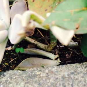 線路脇。 誰かがぽいっとしたであろう、野生化した多肉ちゃん。 よーく見たらちびっこがたくさん!