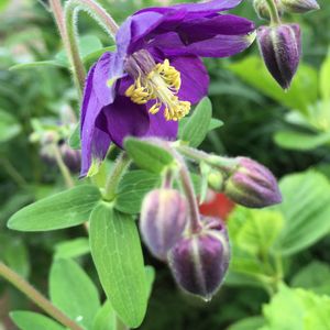 野生化している西洋オダマキのブルーバローとかブラックバローだったもの… 種で生えてくるのは全部この色。 花びらは外側だけで八重咲きの要素はほぼ無い😂