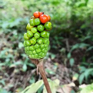 アオマムシグサの実が庭の端っこにありました😱 アオマムシグサ(青蝮草) サトイモ科テンナンショウ属の多年草 有毒植物