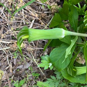 【メモ】4月上旬の様子。湿った林床にて発見。花茎を包んでいる葉の模様がマムシっぽいらしい。有毒植物、特に球根とその汁が☠️。 【感想】名前も生態も毒々しい。触らないで正解だったな。