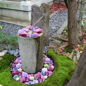 前日お出かけした行田の花手水🌼 苔の上に落ちたモミジも一緒に🍁