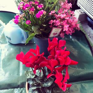 シクラメン🥀🌺🌷 園芸店に並んでいました♪ 白色かチョコレート🍫色のシクラメンを買うか悩んだ結果赤にしました‼️ 輝いている⭐️