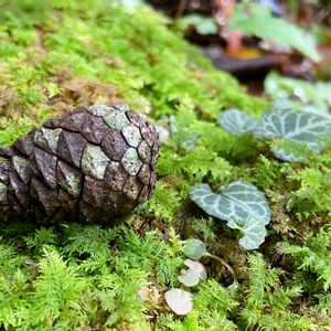 もう一枚失礼します🙏 苔と松ぼっくり💚 この松ぼっくり、オシャレじゃ〜✨ 苔と木の実のpicは 木の実を移動させたりしません😊 苔の上でいい感じに待っててくれます💚 斑入りの葉っぱは何かな? スミレじゃないよね? 気になってます😊 見て頂きありがとうございました🙇♀️ おやすみなさい💤