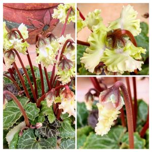 夜中に、こっしょり💦😆 久しぶりに、花屋さんへ息抜きに行ったので…🌱🤭 黄緑色がかった、フリフリの花びらが魅力的ですね✨ʕ ꈍᴥꈍʔ💓💚🤍 初めましての、レアな子✨❇️👀 シクラメン森の妖精🌱🌱🧚