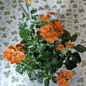 クロサンドラ・スーパーキャンドル 光沢のある葉が素敵です💕 花姿も変わっています💕 和名はかがり火です❣️オレンジの花が、鮮やかです❣️💕
