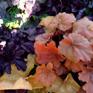 ヒューケラも紅葉してきました ♡ ↖️ソーラーエクリプス ↙️フォーエバーレッド ↗️スペルバウンド ↘️タペストリー