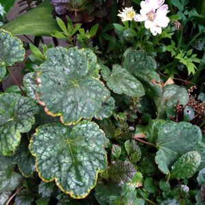 ヒューケラの 葉っぱは黄色く縁取られ 面白い🤗🥀🌹